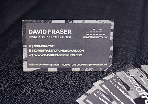 An identity and business card design for North Carolina based drummer, David Fraser.